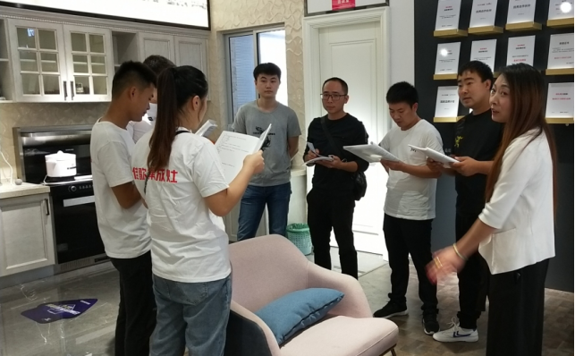 學(xué)員們通過(guò)模仿顧客進(jìn)入門店后的引導(dǎo)和介紹動(dòng)作,詳細(xì)介紹佳歌集成灶的使用方法到各個(gè)產(chǎn)品部分功能和工藝材質(zhì)。