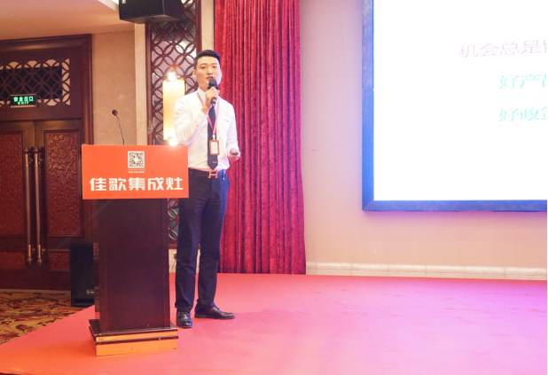 本次會(huì)議由銷管部部長魏諜主持,佳歌集成灶總經(jīng)理袁海濱現(xiàn)場致辭,為大家講解了佳歌的品牌優(yōu)勢。佳歌集成灶營銷總經(jīng)理黃忠海就廚電市場與集成灶朝陽產(chǎn)業(yè)進(jìn)行市場分析及前景預(yù)測,幫助在座來賓了解廚電市場及集成灶行業(yè)發(fā)展趨勢及其潛在利潤空間。