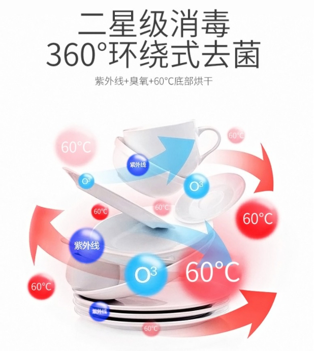 一星級(jí)消毒標(biāo)準(zhǔn):能殺死大腸桿菌等具有代表性的菌種。臭氧消毒時(shí),消毒柜內(nèi)臭氧濃度應(yīng)大于等于每立方米20毫克,消毒時(shí)間30分鐘左右。高溫消毒時(shí),消毒柜內(nèi)消毒溫度應(yīng)大于等于100攝氏度,消毒時(shí)間15分鐘左右。