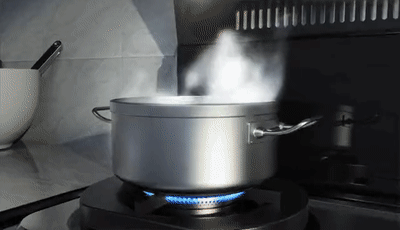 等他們進(jìn)來的時(shí)候,會(huì)看見我在炒菜,油一熱,切好的菜一倒,他們會(huì)看見升騰的油煙被具有99.96%的吸力的佳歌集成灶一吸而凈。