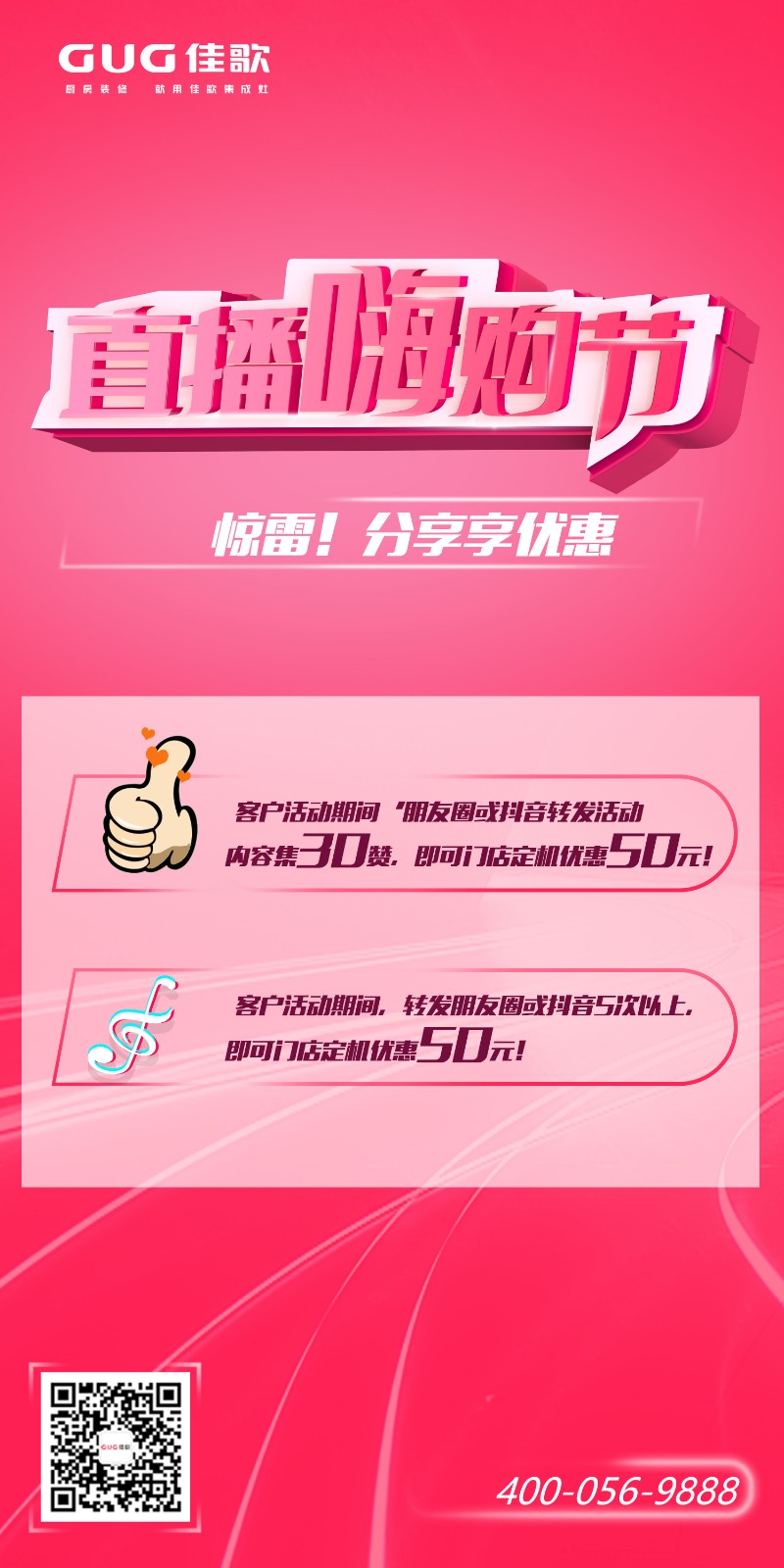 活動(dòng)期間,朋友圈或抖音轉(zhuǎn)發(fā)直播嗨購(gòu)活動(dòng),集滿30贊或者轉(zhuǎn)發(fā)朋友圈/抖音5次以上,即可享受門店定機(jī)50元優(yōu)惠!動(dòng)動(dòng)手指就能省50!