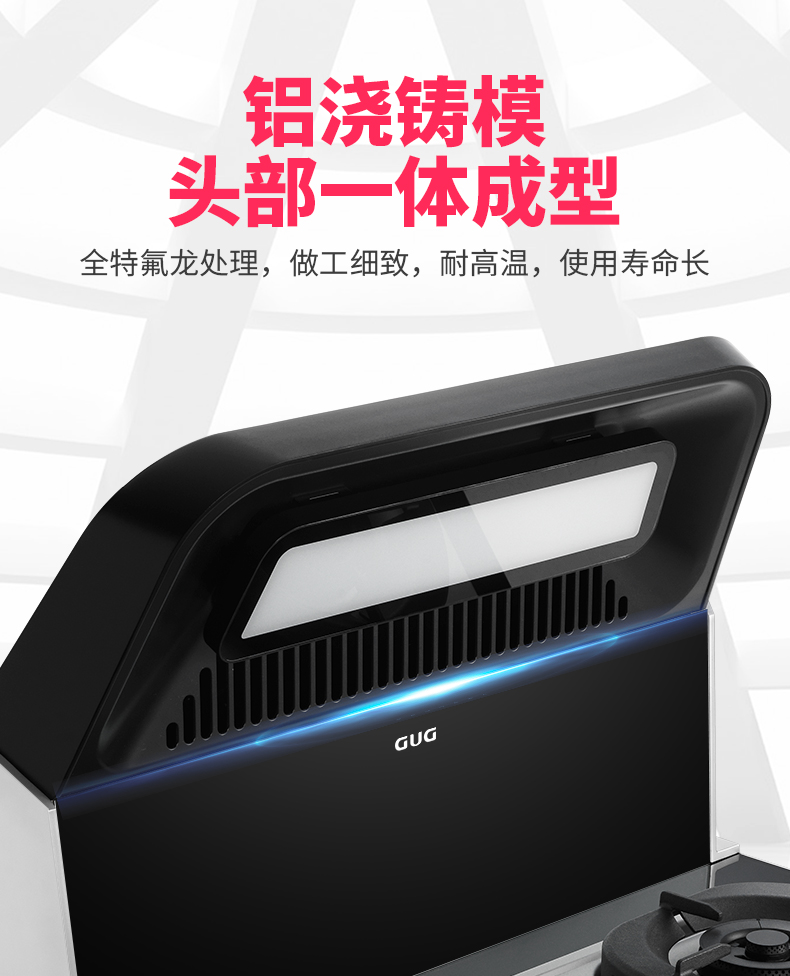 佳歌一米陽光款集成灶采用一體鋁澆注模頭部設(shè)計,成為業(yè)內(nèi)罕見的頭部一體成型的集成灶。折角設(shè)計強效攏煙不逃逸,全特氟龍涂層包裹不沾油一擦即凈,適合只要爆炒不要油煙愛烹飪不愛清潔的你。