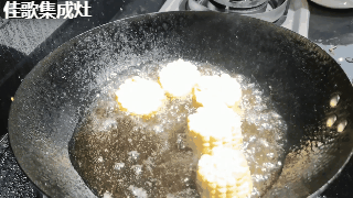 3. 切塊的玉米和土豆炸熟裝盤備用。