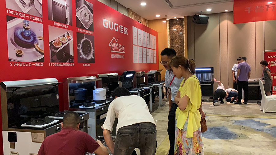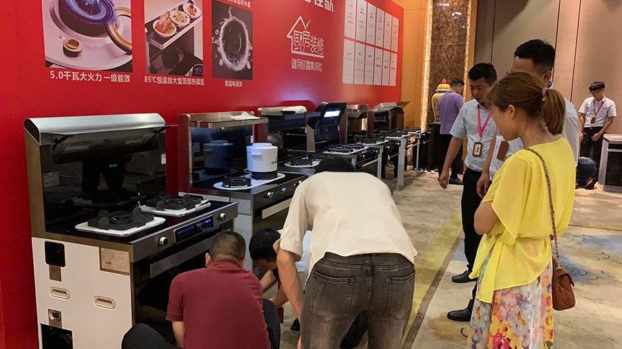 會(huì)場(chǎng)中,一臺(tái)臺(tái)佳歌集成灶被擺放其中,通過(guò)現(xiàn)場(chǎng)驗(yàn)機(jī)展示產(chǎn)品優(yōu)勢(shì),讓眾人更深一步了解佳歌加盟優(yōu)勢(shì)。